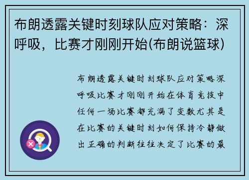 本篇文章将围绕洛杉矶快船队在2025赛季常规赛中展现的强大防守能力进行详细分析。快船队的防守成为了他们成功的关键因素之一,尤其是在面对竞争激烈的西部联盟时。文章将从四个方面来深入探讨快船队的防守表现,包括防守效率、防守战术的多样性、球员个人防守能力以及团队协作的整体性。通过对这些方面的阐述,我们可以...